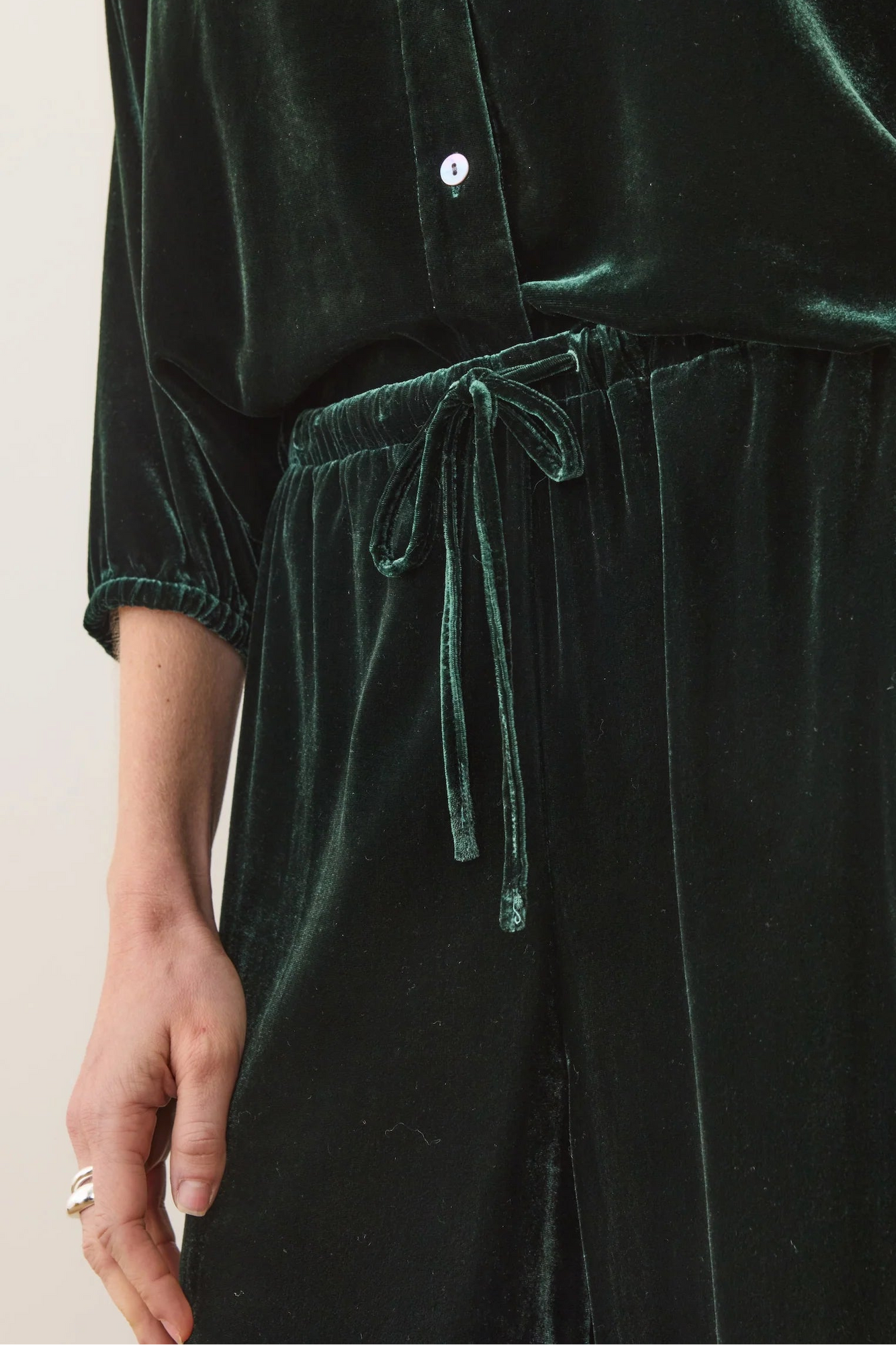 These oh-so sleek pants feature a simple drawstring. They're flowy and relaxed, you get the rich, luxe feel of velvet. They're perfect for cocktail hour, dimly lit dinners, and everywhere you want to bring a little luxury this holiday. Especially if you wear them with the matching top.