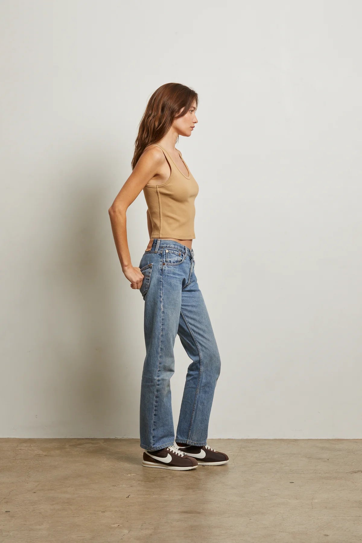 You've found your new favorite tank. The rib is a blend of luxury cotton and spandex, with a solid feel and second-skin style fit. Classic, durable, comfortable.