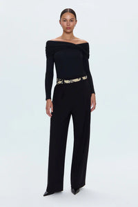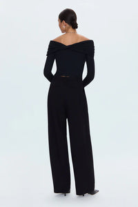 A tailored trouser, Eden features a high rise, sharp pleats, and a fluid wide leg for a modern take on classic tailoring. Cut from ponte fabric with subtle stretch, it balances structure and comfort for polished ease. Night Out, a deep black shade, offers timeless versatility from desk to dinner.