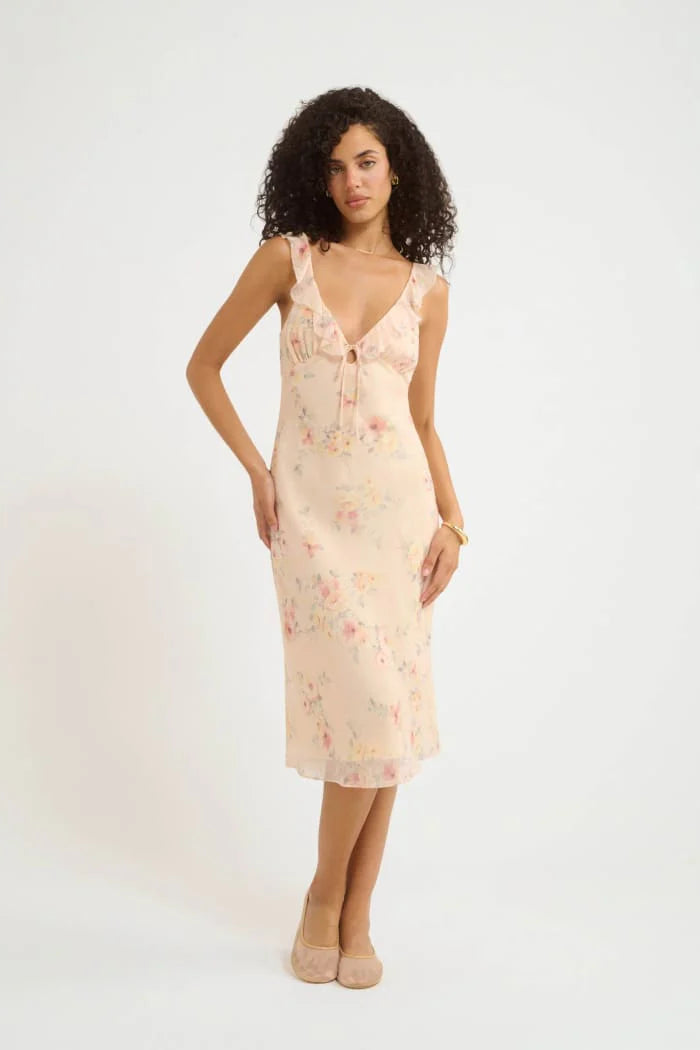Designed with '50s-inspired bias-cut slip dresses in mind, the Butterfly features flouncy ruffles, a flirty keyhole with micro ties, and a soft V-neck that effortlessly frames your shoulders. Feminine, but never fussy—it’s the kind of dress you’ll want to twirl in.