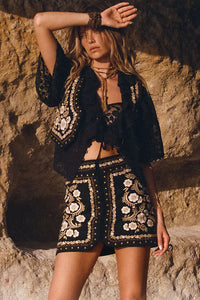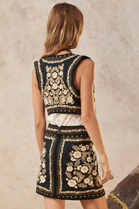 Experience the ultimate in edgy fashion with the Remi Vest in Midnight. Made from stretch linen, this vest features custom embroidery and hardware, adding a unique touch to your wardrobe. With a hook and eye closure at the front, it offers the perfect fit for the risk-taking rock and roll goddess in you!