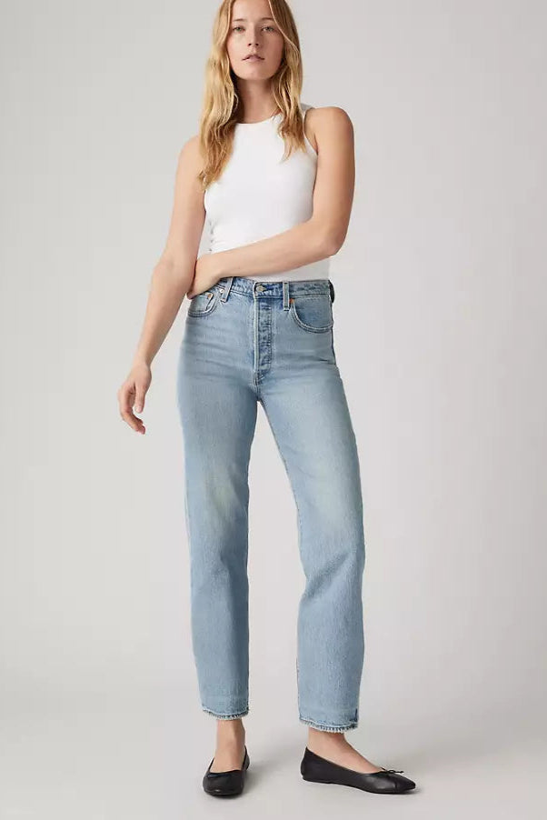 Highest high rise yet. The Ribcage jeans—with their soaring 14-inch rise—have become a waist-defining, leg-lengthening obsession. This fit will show off your figure and make you feel as amazing as you look. A versatile fit with a flattering high-rise. Finished with a classic straight leg that hits at the ankle. Woven with a hint of stretch for all-day comfort.